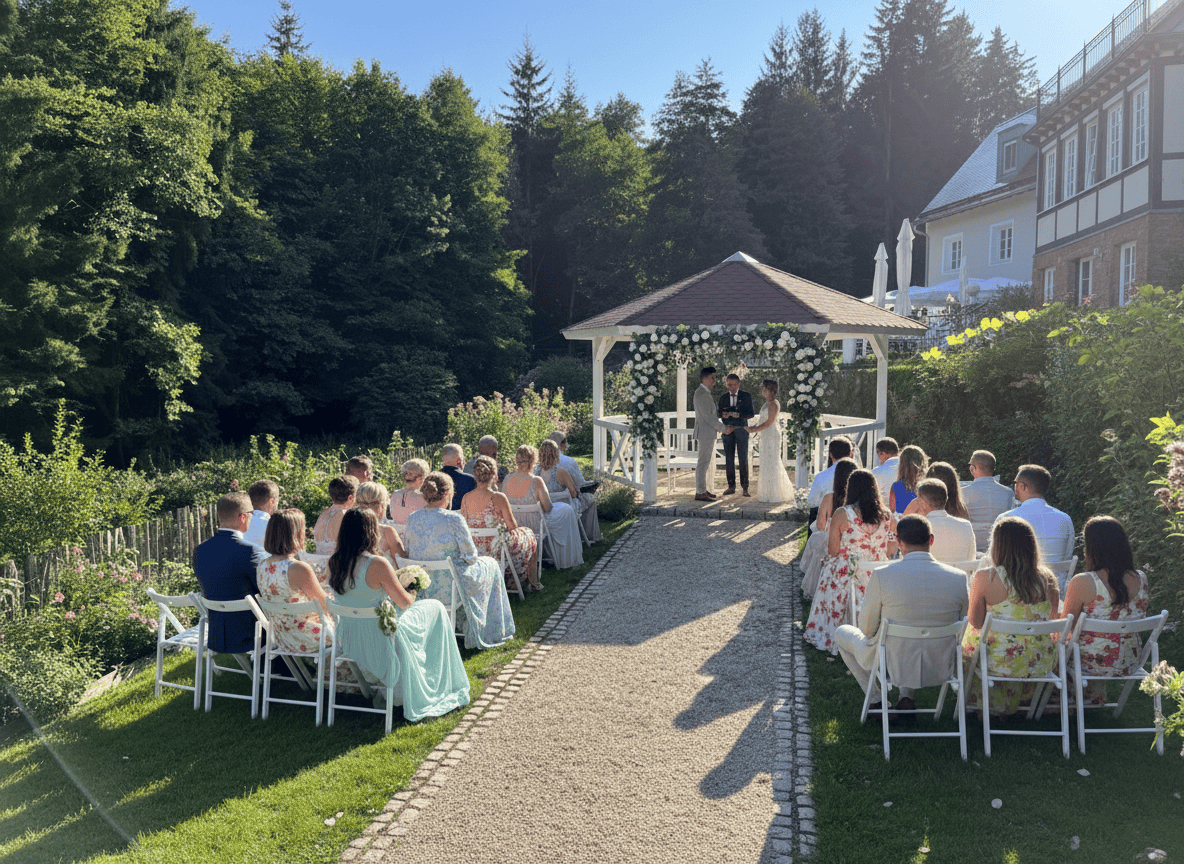 Und solltet ihr eine Freie Trauung planen, bietet unser Rosengärtchen mit dem romantischen Hochzeitspavillon die perfekte Kulisse. Übrigens können ab 2026 bei uns auch Standesamtliche Trauungen über die Gemeinde Linsengericht durchgeführt werden!